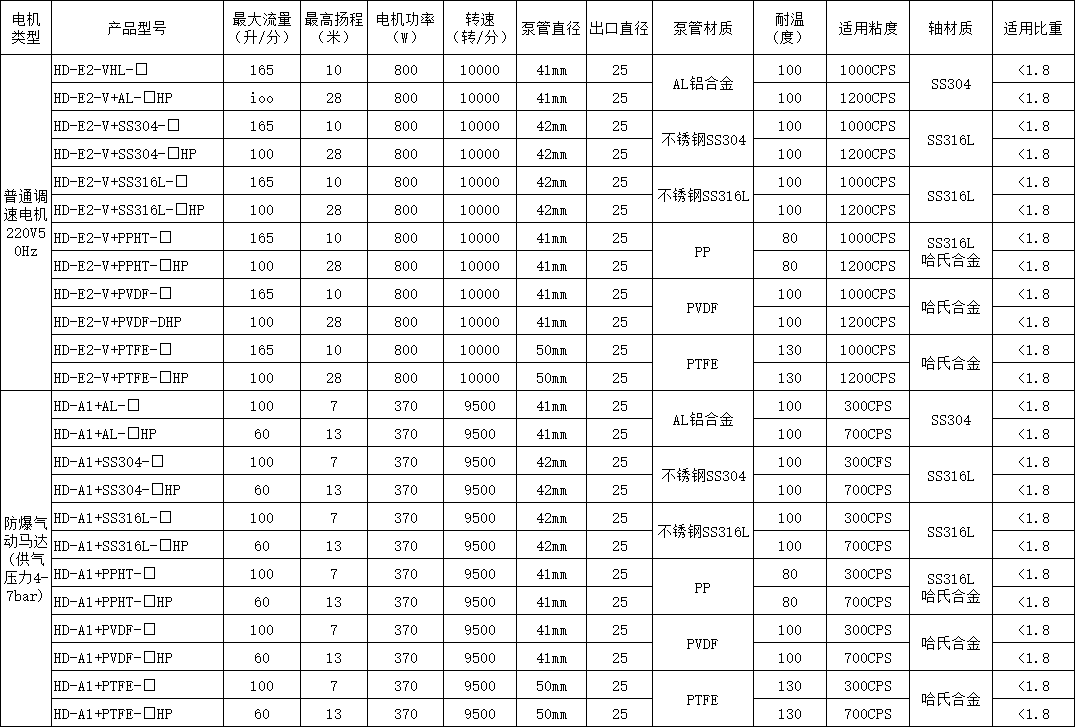 以上產品型號中“□”泵管的長度