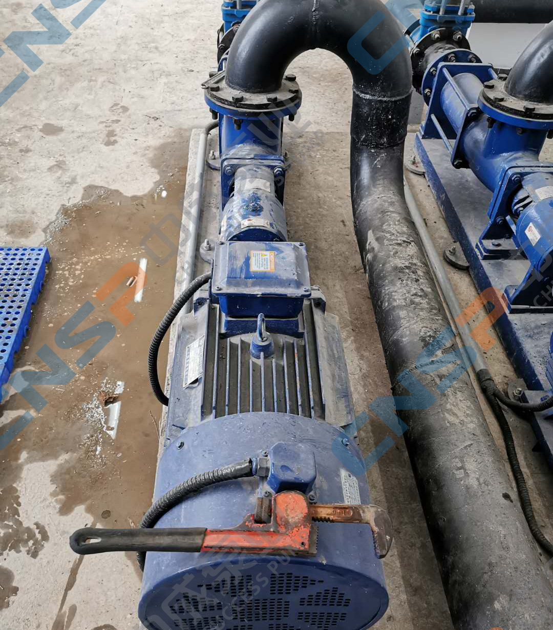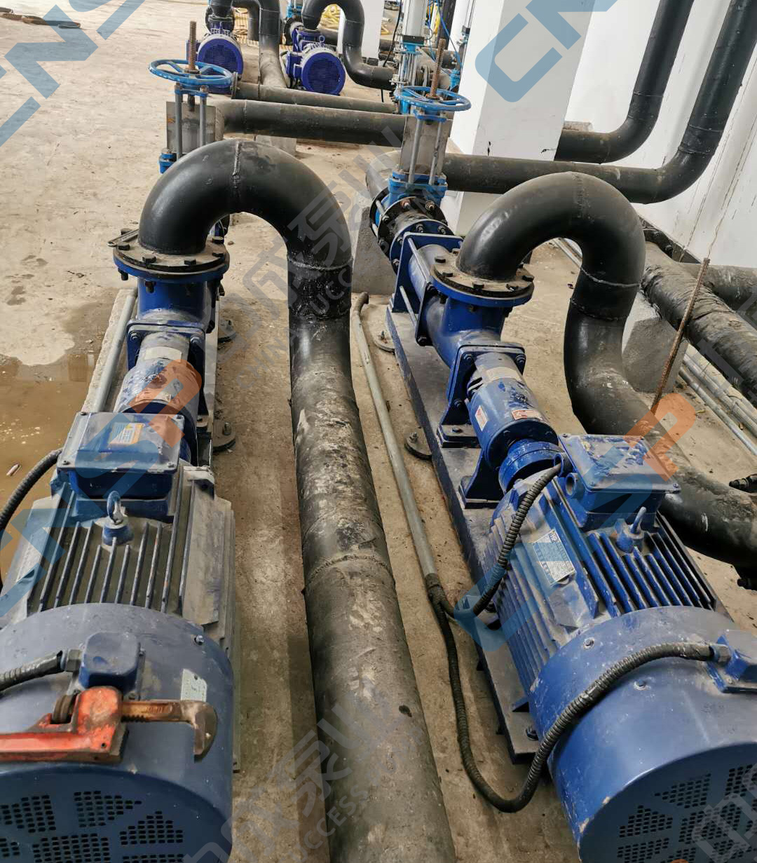 湖南某建材廠在我廠采購一批螺桿泵,型號為G70-2,用來抽污水。近期反映螺桿泵低頻啟動困難,中成泵業技術工程師建議工頻啟動,啟動后再降低頻率,指導客戶現場調試完畢,螺桿泵成功啟動恢復正常運行。